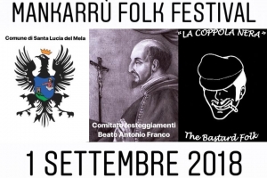 Mankarru Folk Festival @ Santa Lucia del Mela (ME) Con l’obiettivo di far conoscere la cultura e la tradizione siciliana, torna a Santa Lucia del Mela il “Mankarru Folk Festival”, la sesta edizione della manifestazione musicale interamente dedicata alla musica siciliana etno-folk. appuntamento sabato 1 settembre alle 21.30 in piazza Duomo. L’evento, che prende il nome dal colle Mankarru sul quale è stato edificato il Castello di Santa Lucia del Mela, è organizzato dal gruppo musicale luciese La Coppola Nera…