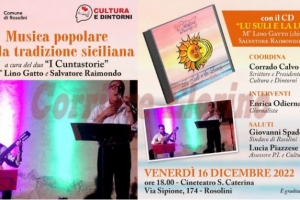 Duo i Cuntastorie @ Rosolini (SR) Venerdì 16 novembre, nella sala del cineteatro Santa Caterina, torna un nuovo appuntamento culturale firmato Cultura e Dintorni. Sarà presentato, questa volta, il cd del duo i Cuntastorie, del maestro Lino Gatto (chitarra) e di Salvatore Raimondo (voce). Una serata all’insegna della musica popolare della tradizione siciliana, raccolta appunto nell’album del duo, dal titolo “Lu suli e la luna”. L’appuntamento è per venerdì 16 novembre alle ore 18 al Cineteatro Santa Caterina, in Via Sipione 174.