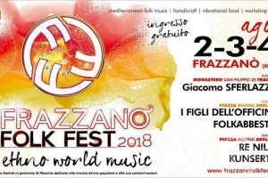 Frazzanò Folk Fest – Ethno World Music (ME) E’ tutto pronto per la quinta edizione del “Frazzanò Folk Fest – Ethno World Music”, che anche quest’anno dal 2 al 4 agosto porterà nel centro nebroideo il meglio della musica etnica popolare. La manifestazione, come nelle scorse edizioni, è organizzata dal Comune di Frazzanò, con la direzione artistica e organizzativa di Marco Imbroscì, in collaborazione con le Assocazione socio-culturali “Vivere Frazzanò” e “Gioventù Frazzanese, con il contributo dell’Unione dei Comuni dei…