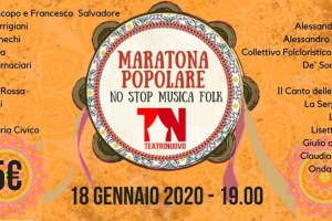 Maratona Popolare @ Pisa Il 18 gennaio un evento straordinario al Teatro Nuovo di Pisa: una Maratona di musica popolare, ore e ore di musica e di festa, con decine di artisti della scena folk e world toscana e nazionale! Dalle 19.00 a notte si alterneranno sul palco: ACUSTICA-Trasposizioni acustiche nell’arpa di Viggiano ALESSANDRO GIOBBI ALESSANDRO OTTAVIANI ANNA MARIA CIVICO CLAUDIO CESARONI COLLETTIVO FOLCLORISTICO MONTANO DE’ SODA SISTERS GIANFRANCO NARRACCI GIULIO D’AGNELLO E ONDA ACUSTI FOLKOINÈ IL CANTO DELLE RAGAZZE…