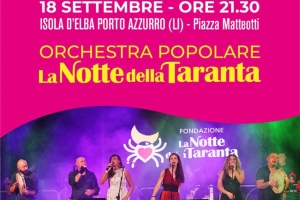 Orchestra Popolare La Notte della Taranta @ Isola d’Elba (LI) E’ il più grande e importante festival di musica popolare d’Europa, dal 1998 ha reso possibile la valorizzazione e la diffusione nel mondo della musica e della danza del Salento: la pizzica. Dopo un grande successo per la 25 edizione che quest’estate ha fatto ballare migliaia di persone, l’Orchestra Popolare della Notte della Taranta arriva all’isola d’Elba. La pizzica è un ballo appartenente alla famiglia delle tarantelle utilizzata nel passato…