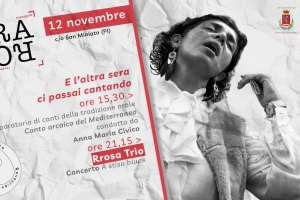 Rassegna Rovesciata di canto di tradizione orale @ San Miniato (PI) Ra.Ro. – (prima) Rassegna Rovesciata di canto di tradizione orale Sabato 12 novembre – E l’altra sera ci passai cantando ore 15,30 – biblioteca comunale “Mario Luzi”, San Miniato Canto arcaico del Mediterraneo – Sguardo furtivo su una pratica di canto e sulla vocalità Laboratorio condotto da Anna Maria Civico A chi è rivolto: persone adulte, senza altri prerequisiti Accesso e costo: Il laboratorio prevede un contributo di 20…