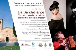 BandaDante. Concerto viandante dei vivi, dei morti e dei tipi danteschi Si avvicina il 2021, anno della celebrazione di Dante Aligheri a settecento anni dalla sua scomparsa. E non potevano essere che il poeta Davide Rondoni e il Maestro della musica popolare italiana, Ambrogio Sparagna, a ideare e curare un progetto artistico di grande fascino e originalità dedicato al Sommo Poeta e alla Divina Commedia, BandaDante. Concerto viandante dei vivi, dei morti e dei tipi danteschi, una carovana artistica che si metterà in viaggio per raccogliere e coinvolgere nel suo…