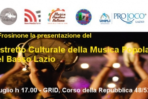 Una nuova realtà per la Musica Popolare: nasce nel Basso Lazio il Distretto culturale dedicato Parte dalle province di Frosinone e Latina il progetto “Distretto culturale della Musica Popolare del Lazio Meridionale”, progetto innovativo di sviluppo territoriale, basato sulla valorizzazione del bene culturale della musica popolare, che coinvolge anche le aree limitrofe della Campania, dell’Abruzzo, del Molise, della provincia di Roma. Il progetto è sviluppato dal nostro editore digitale, la società New Media Farm, titolare di musicapopolareitaliana.com, insieme all’ASSOCIAZIONE CULTURALE TA’M TERRAE…