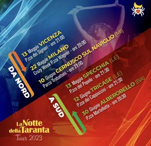 La Notte della Taranta Tour Artista: Sito ufficiale: Data e orario: Data: da 30/06/2023 Location: Città: Carica Evento Segnala un errore/Aggiorna info [social_share_button] [like] Italia Info La Notte della Taranta Tour LA NOTTE DELLA TARANTA TOUR 2023 Da Nord a Sud, una primavera da ballare