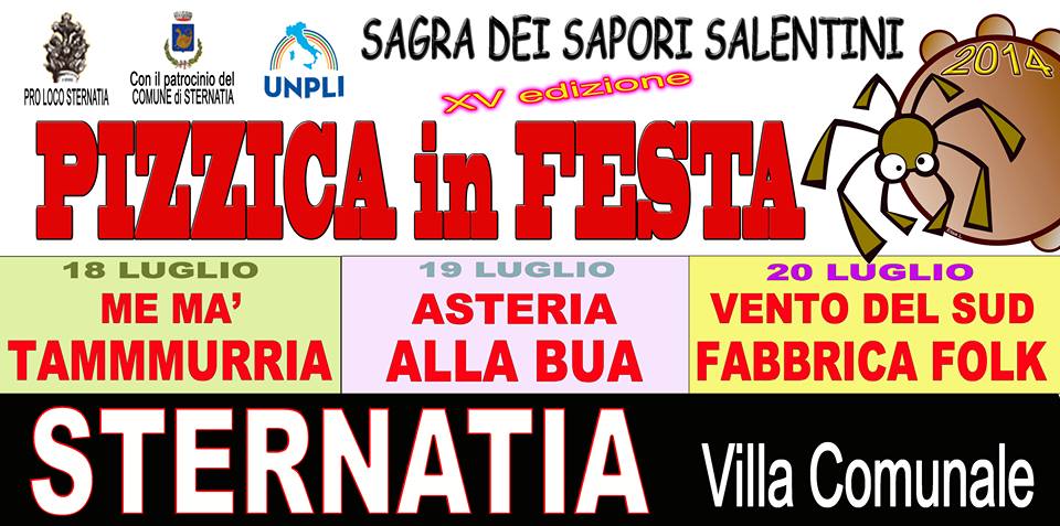 Oggi vogliamo parlarvi di un appuntamento del weekend legato alla tradizione, all'enogastronomia e alla musica popolare italiana: "Pizzica in festa - Sagra dei prodotti salentini", di scena a Sternatia (LE) il 18, il 19 e il 20 luglio 2014.