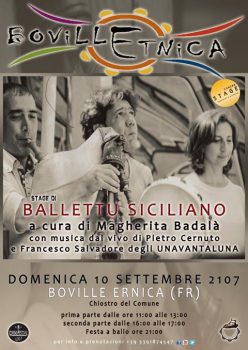 La scuola di ballo Danza della Terra organizza, per la prima volta in Ciociaria, lo stage di "Ballettu Siciliano" a cura di Margherita Badalà con la musica dal vivo di Pietro Cernuto e Francesco Salvadore degli UNAVANTALUNA.