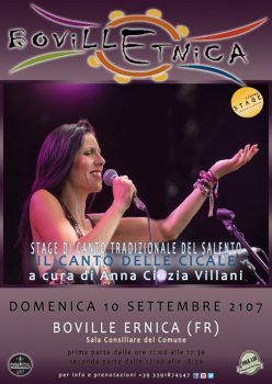 La scuola di musica e balli popolari FolkLab organizza, per la prima volta in Ciociaria, lo stage di canto popolare Salentino a cura di Anna Cinzia Villani.