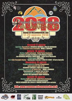 L’obiettivo della 4a edizione diventa sempre più quello di coinvolgere tutta la valle nella sua estensione, collegando i vari borghi con il denominatore comune della musica, poiché continuiamo a credere che le diverse forme di espressione artistica, pur consapevoli della difficoltà di progetti simili, possano avvicinare sempre più persone ad un posto come la Valsavarenche che rimane ancora un piccolo gioiello, davvero "angolo di Paradiso", interamente all'interno del Parco Nazionale.