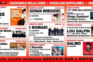 Festival Contro a Castagnole Lanze (AT) Castagnole Lanze, tra Langhe e Monferrato, è la terra della canzone d’impegno: nel nome di Augusto e Dante dei Nomadi, il festival Contro è l’evento che richiama ogni anno migliaia di appassionati. In piazza San Bartolomeo dal 23 al 31 agosto, tanti appuntamenti nel nome delle musica, tra canzone d’autore e rock, musica indipendente e rap, suoni occitani e dj, passando per la Fiera della Nocciola, le cucine piemontesi e d’Italia, con l’immancabile concerto dei…